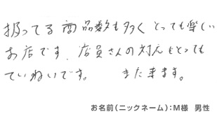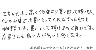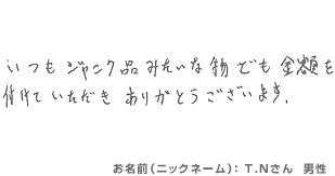 日本全国買取ドットコム!総合リサイクルみっけ > お客様の声