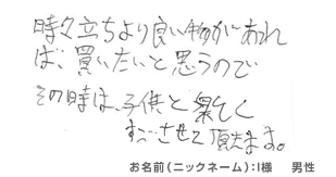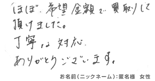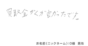 実際に買い取らせていただいたお客様の声を公開しています。 お客様の声には率直な感想や、満足の言葉がいっぱい!