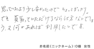 8月 - 思ってたより少し安かったので、ちょっとがっかり。でも、買取っていただけるなら仕方ないでしょう…