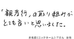 4月 - 「親孝行」の取り組みがとても良いと思いました。